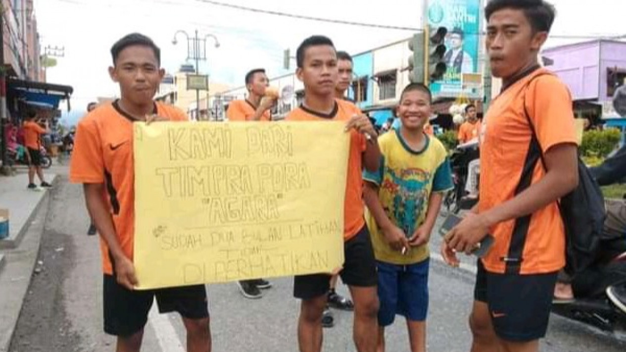Kutacane, Aceh Tenggara - Puluhan Tim Pra Pora kontingen Sepak Bola yang dinaungi oleh KONI Aceh Tenggara turun ke jalan, Rabu (03/11/21). Mereka meminta bantuan tambahan dana untuk mengikuti pertandingan sepak bola di Gayo Lues yang akan berlangsung dalam waktu dekat.