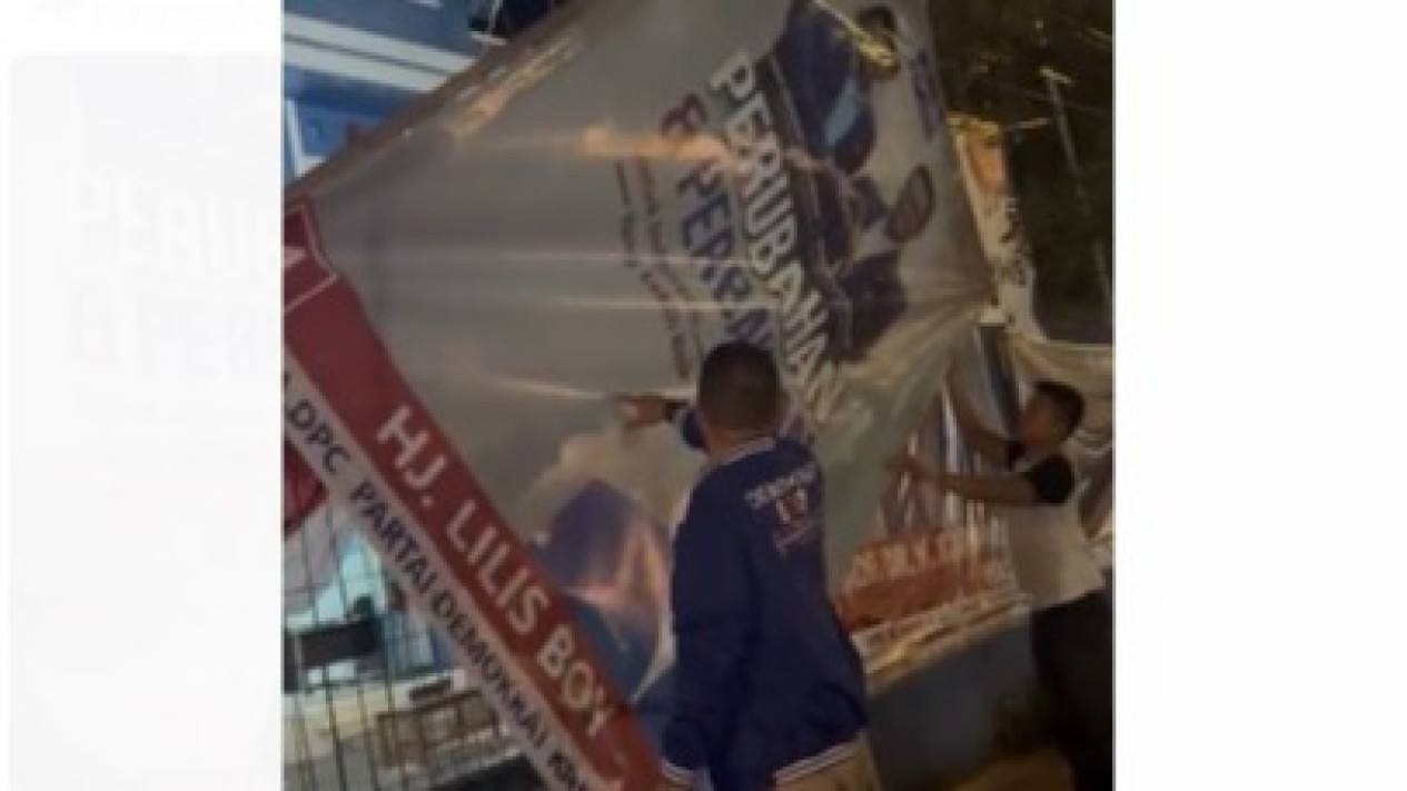 Dari video yang diterima oleh tvOnenews, seseorang kader Partai Demokrat menginstruksikan untuk menurunkan baliho atas instruksi dari DPP.