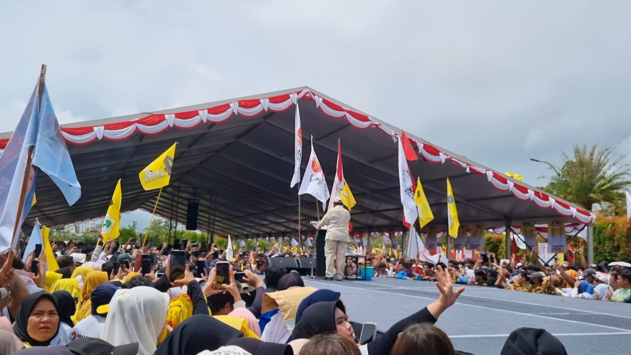 "Saudara-saudara sekaliam, kita negara yang sangat kaya. Saya Prabowo Subianto bersama Gibran, Koalisi Indonesia Maju, kami bersumpah akan menjaga kekayaan Indonesia demi rakyat," ujar Prabowo, Sabtu (20/1/2024).