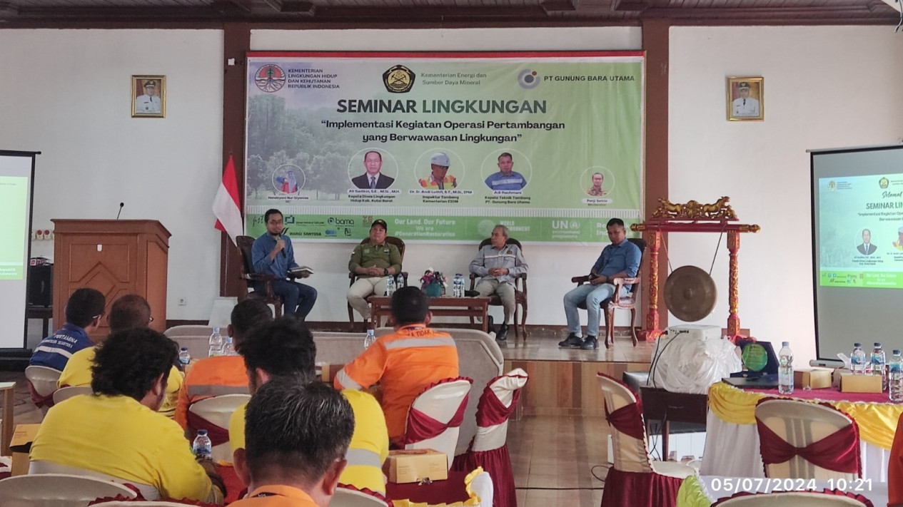 Memperingati Hari Lingkungan Hidup (HLH) 2024, PT Gunung Bara Utama (GBU) menggelar seminar di Ballroom Hotel Grand Family Barong Tongkok, Kutai Barat, Jumat (5/7/2024).