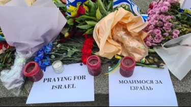 Jakarta, tvOnenews.com - Hanya beberapa meter darinya, tergeletak di salah satu lempengan beton yang mengelilingi kedutaan Israel di Kyiv, terdapat bunga segar dan potongan kertas bertuliskan “Doa untuk Israel” dalam bahasa Inggris dan Ukraina.