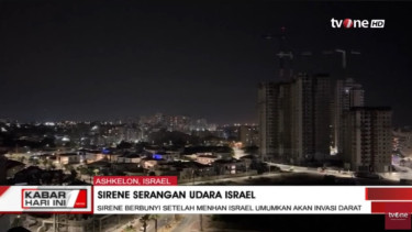 tvOnenews.com - Sirine serangan udara menggema di Kota Askelon, Israel Selatan pada Jumat (27/10/2023) malam.