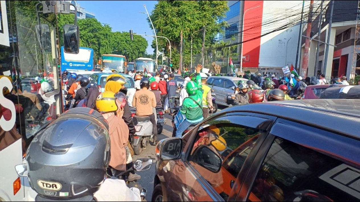 Aksi Bela Palestina di Kedubes AS, Arus Lalu Lintas di Tugu Tani Macet Total