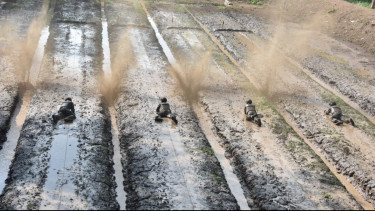 Siswa Pendidikan Komando Pasukan Katak (Dikkopaska) Angkatan 47, yang saat ini mengikuti pendidikan komando Frogman TNI AL, bertempat di Hutan Selogiri, Banyuwangi, Jawa Timur, Kamis (18/01/2024)..