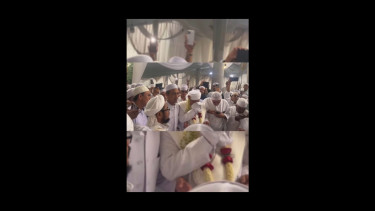 Momen itu berlangsung saat Habib Rizieq bersama para tamu undangan bersolawat nabi sebelum prosesi akad nikah berlangsung.