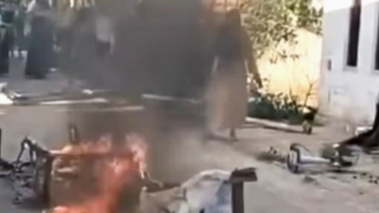 Dalam rekaman video itu emak-emak merusak warung tersebut dengan cara melempari batu ke arah warung tersebut.