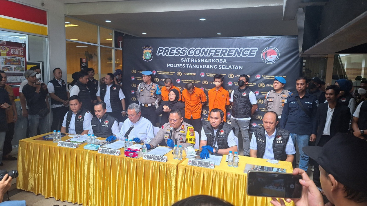 Polisi menggerebek pabrik narkoba jenis tembakau sintetis yang bermarkas di apartemen kawasan Serpong, Kota Tangerang Salatan (Tangsel).