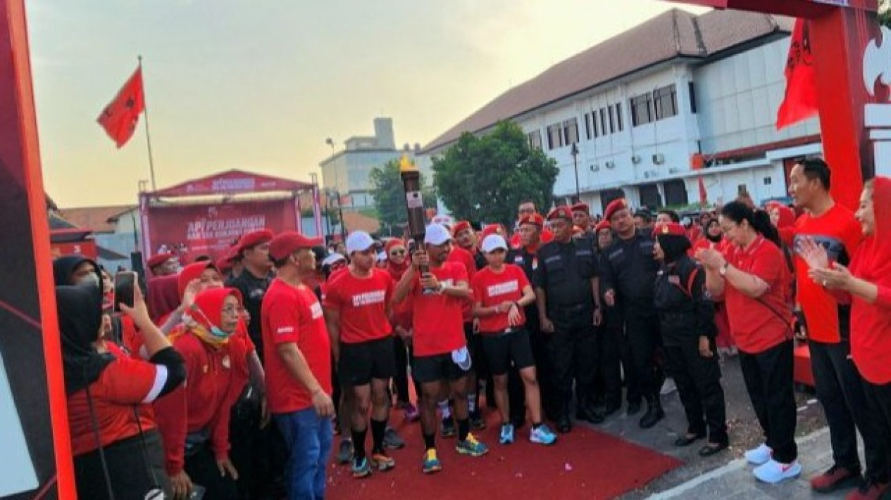 Obor yang dibawa oleh sejumlah pelari tersebut dilepas oleh pengurus serta para kader dan simpatisan PDIP dari berbagai daerah di Kota Semarang.