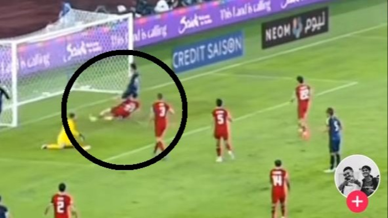 Justin Hubner sejatinya mencoba menghalau bola dari pemain Jepang, namun arah bola justru masuk ke gawang Timnas Indonesia sendiri.