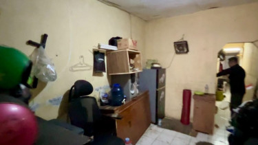 Dengan ruang yang terlihat hanya sepetak, kontrakan itu dihuni delapan orang dengan total empat kamar di dalamnya. Bangunan tersebut tampak memanjang ke belakang.