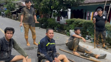 Saat tiba di Sibolga, Syukri yang pakaiannya sudah berlumuran tanah pun tetap langsung bekerja untuk penanganan bencana di daerahnya.