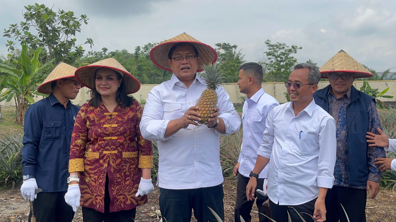 Pekanbaru, tvOnenews.com - Wakil Menteri Transmigrasi, Viva Yoga Mauladi memperkenalkan Nanas Moris dan berbagai produk olahannya, yang merupakan hasil pertanian dari masyarakat transmigran di Kabupaten Kampar, Pekanbaru, Riau.