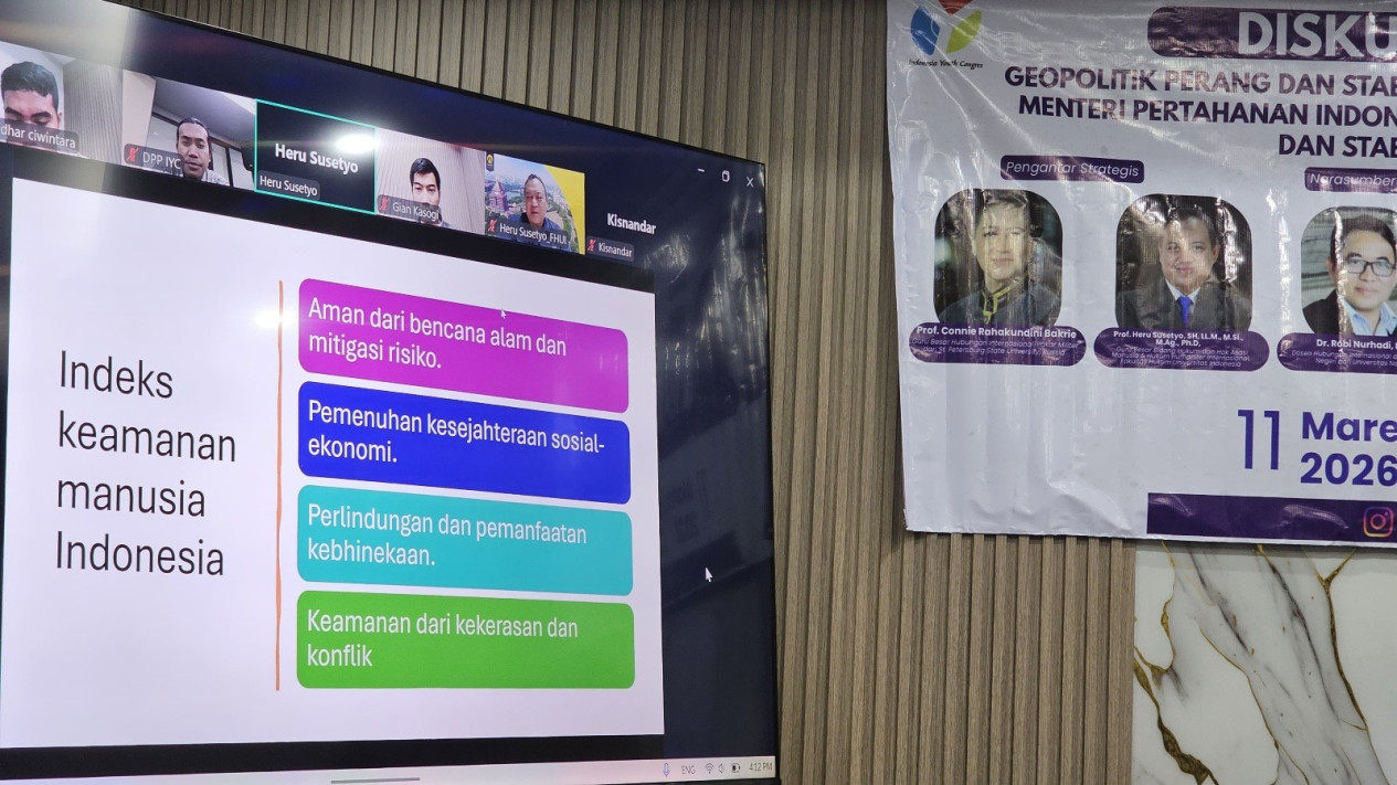 Jakarta, tvOnenews.com - Sejumlah akademisi dan peneliti menilai Menteri Pertahanan Sjafrie Sjamsoeddin perlu menjaga fokus pada mandat utama pengelolaan pertahanan negara dalam diskusi publik yang digelar Dewan Pimpinan Pusat Indonesia Youth Congress.