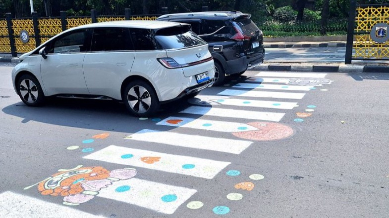 Uniknya, marka jalan tersebut dilukis dengan karakter gim ikonik "Pac-Man" sebagai bentuk protes sekaligus upaya menjaga keselamatan pejalan kaki.