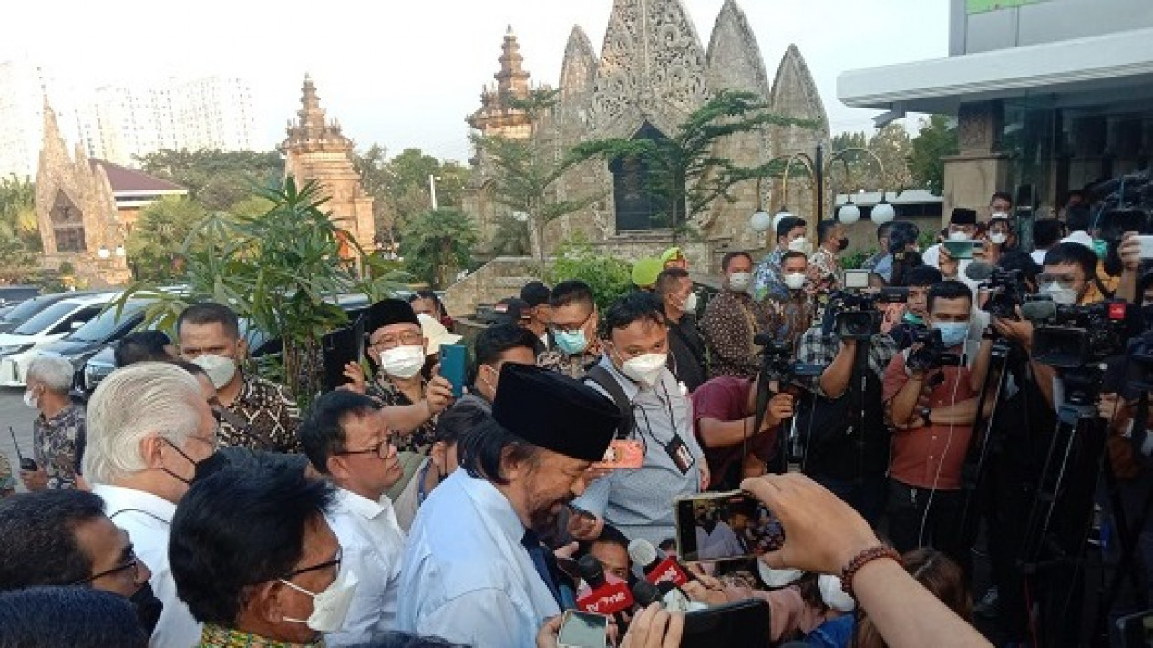 Jakarta - Ketua Umum DPP Partai Nasional Demokrasi (NasDem) Surya Paloh hadiri pemakaman Menteri Pendayagunaan Aparatur Negara dan Reformasi Birokrasi (MenPAN-RB) Tjahjo Kumolo. Surya Paloh mengatakan bahwa hubungan antara dirinya dengan Almarhum sudah seperti kakak dan adik.