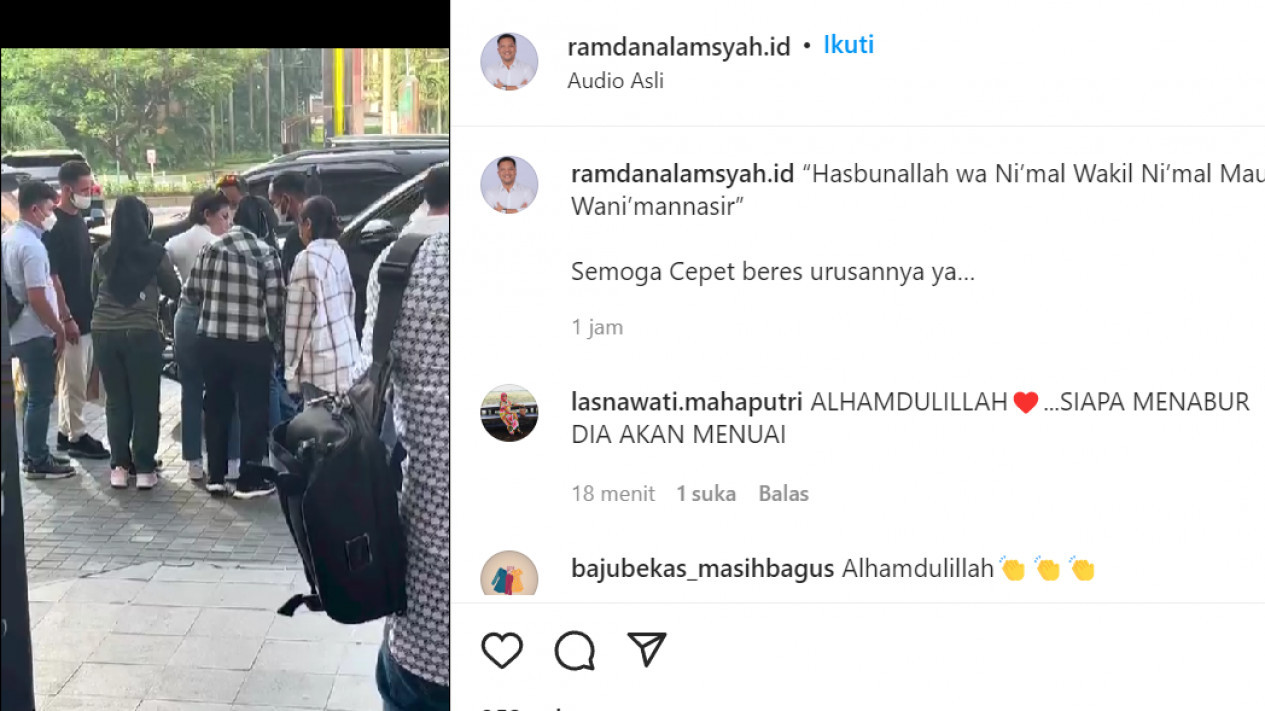 “Hasbunallah wa Ni’mal Wakil Ni’mal Maula Wani’mannasir”. "Semoga Cepet beres urusannya ya…" demikian unggahan @ramdanalamsyah.id.