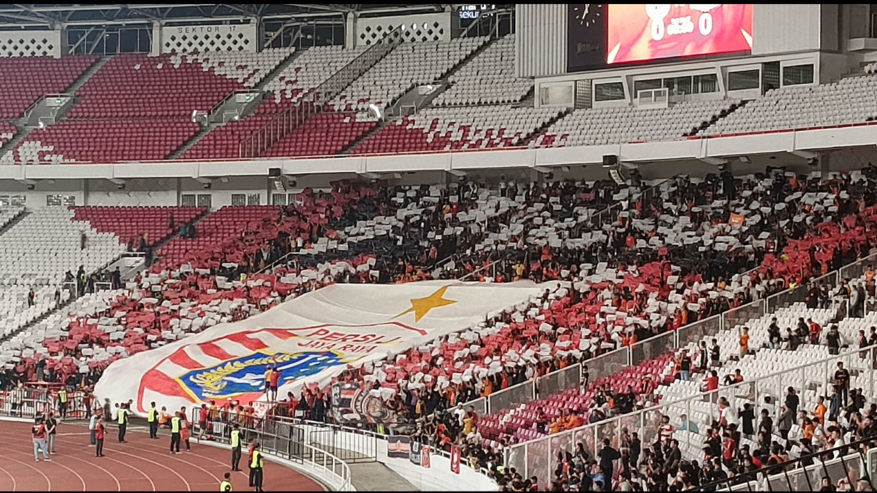 Tak hanya itu, koreo kertas berwarna jingga dan putih itu mendampingi logo Persija yang dibentangkan tersebut.