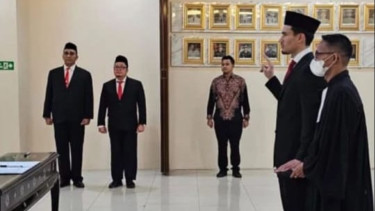 Nathan Tjoe-A-On mengambil sumpah di Kantor Kanwil Kemenkumham, Jakarta, Selasa (12/3/2024) dini hari WIB.