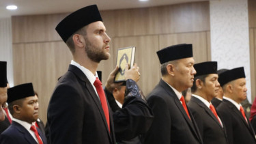 Tanpa ribut-ribut, Maarten Paes memberikan kejutan dengan mengikuti Pengambilan Sumpah Janji Setia di Kantor Wilayah Kemenkumham DKI Jakarta, Selasa (30/4/2024).