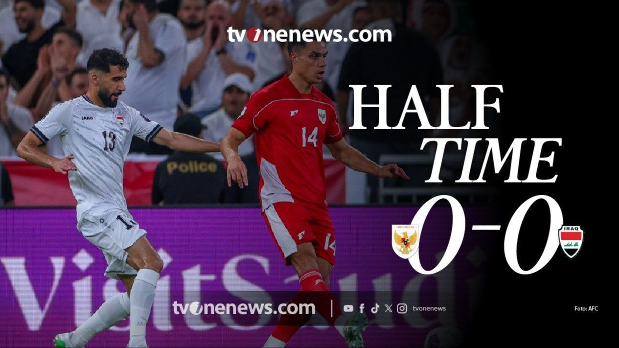 Skor babak pertama pun masih tertahan 0-0 melawan Irak.