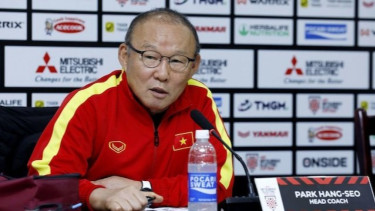 Momen itu terjadi ketika Vietnam mendapat giliran pertama memberikan keterangan pers jelang pertandingan. Park Hang-seo bersama pemainnya, Pham Tuan Hai yang menjadi perwakilan.