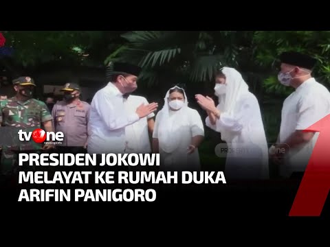 Jakarta - Presiden Joko Widodo melayat ke rumah duka almarhum Arifin Panigoro di Cilandak Timur, Jakarta Selatan pada Selasa pagi. Presiden tiba pukul 09.00 Dan disambut oleh istri almarhum serta kedua anak almarhum.