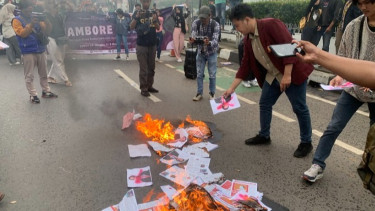 Mereka juga turut membakar foto Presiden Jokowi sebagai bentuk kekecewaan terhadap pemerintahan yang dipimpinnya karena telah keluar dari koridor demokrasi.