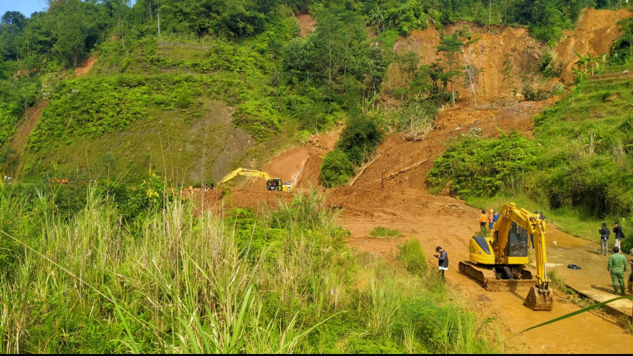 Selain itu, dua alat berat saat ini masih melakukan pembukaan jalan yang tertimbun longsor di kampung muara.