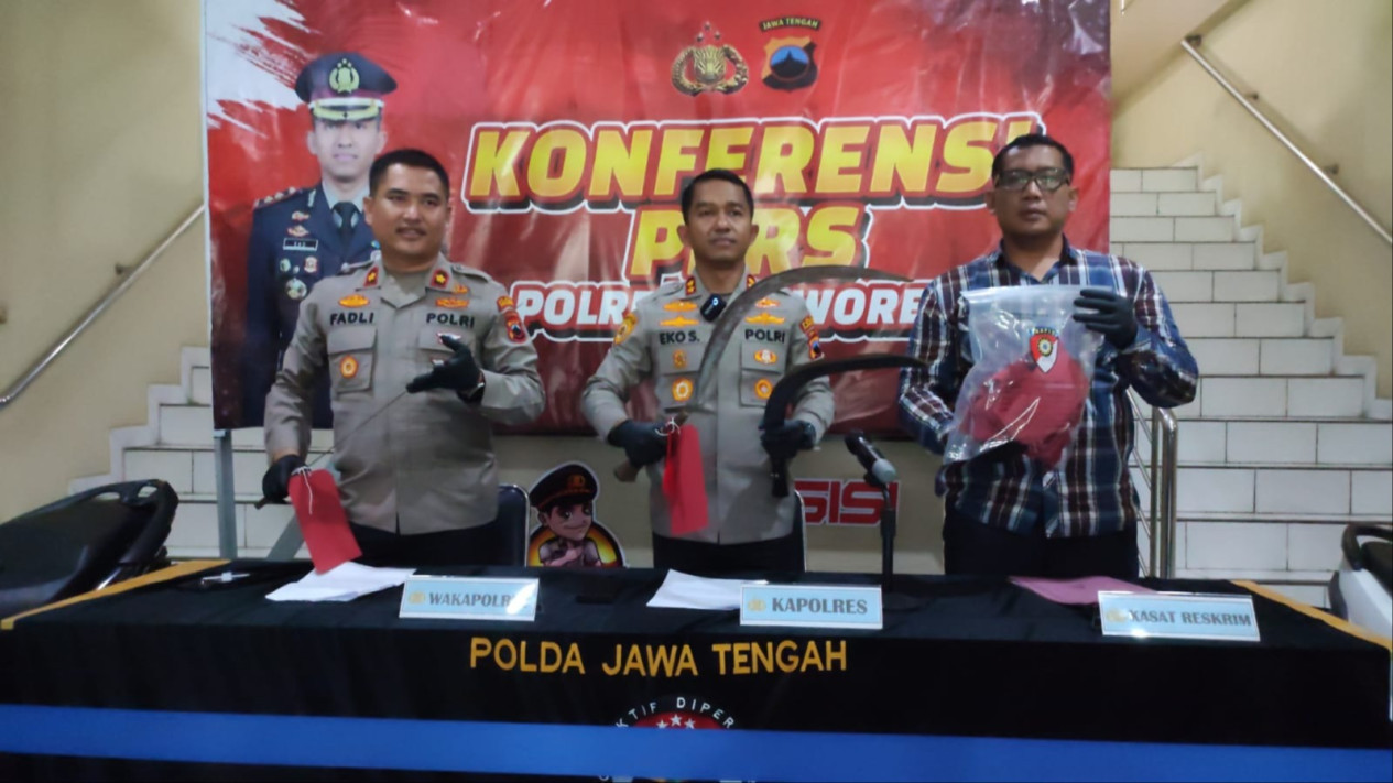 Kapolres Purworejo AKBP Eko Sunaryo didampingi oleh Waka Polres Purworejo Kompol Fadli dan Kasat Reskrim AKP Catur Agus Yudo Prasenopada saat konferensi pers Kamis (25/4/2024) siang menjelaskan kronologi awal mula terjadinya tawuran.