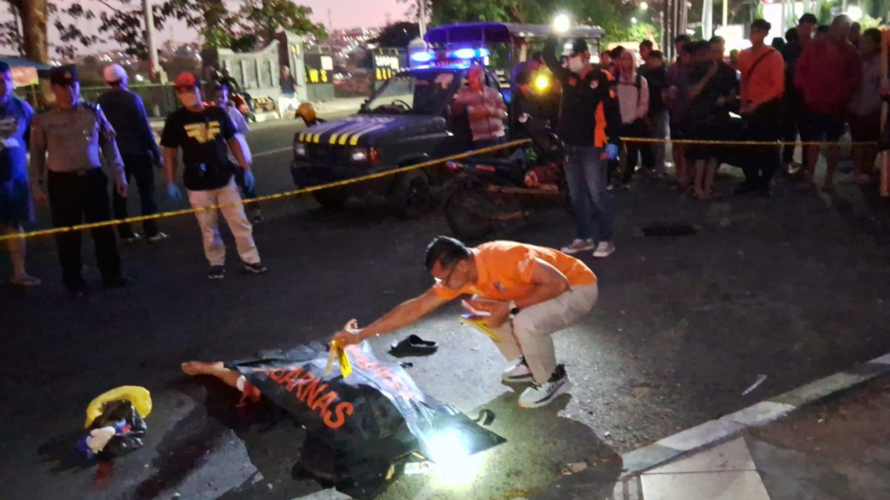 Rekan korban berhasil menyelamatkan diri. Nahas, korban yang sudah tak berdaya tergeletak di jalan raya depan akses keluar SPBU yang bersebelahan dengan Swalayan.