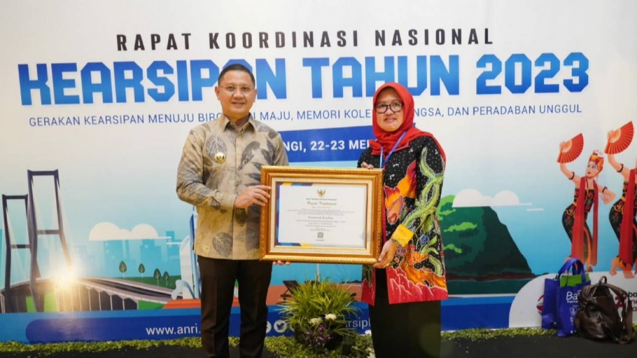 Batu, tvOnenews.com - Kota Batu menerima penghargaan peringkat 5 Nasional Pengawasan Kearsipan dari Arsip Nasional Republik Indonesia (ANRI) yang diserahkan Menteri Pendayagunaan Aparatur Negara dan Reformasi Birokrasi (Menpan-RB) Abdullah Azwar Anas bersama Kepala Arsip Nasional RI Imam Gunarto, pada Peringatan Hari Kearsipan Nasional ke-52 Tahun 2023 di Hotel El Royal Banyuwangi, Senin (22/5).