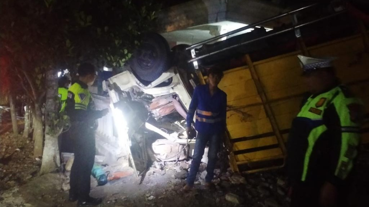 Diduga Rem Blong, Truk Rombongan Wisatawan Lokal Asal Bululawang Tabrak Rumah dan Dua Orang Tewas