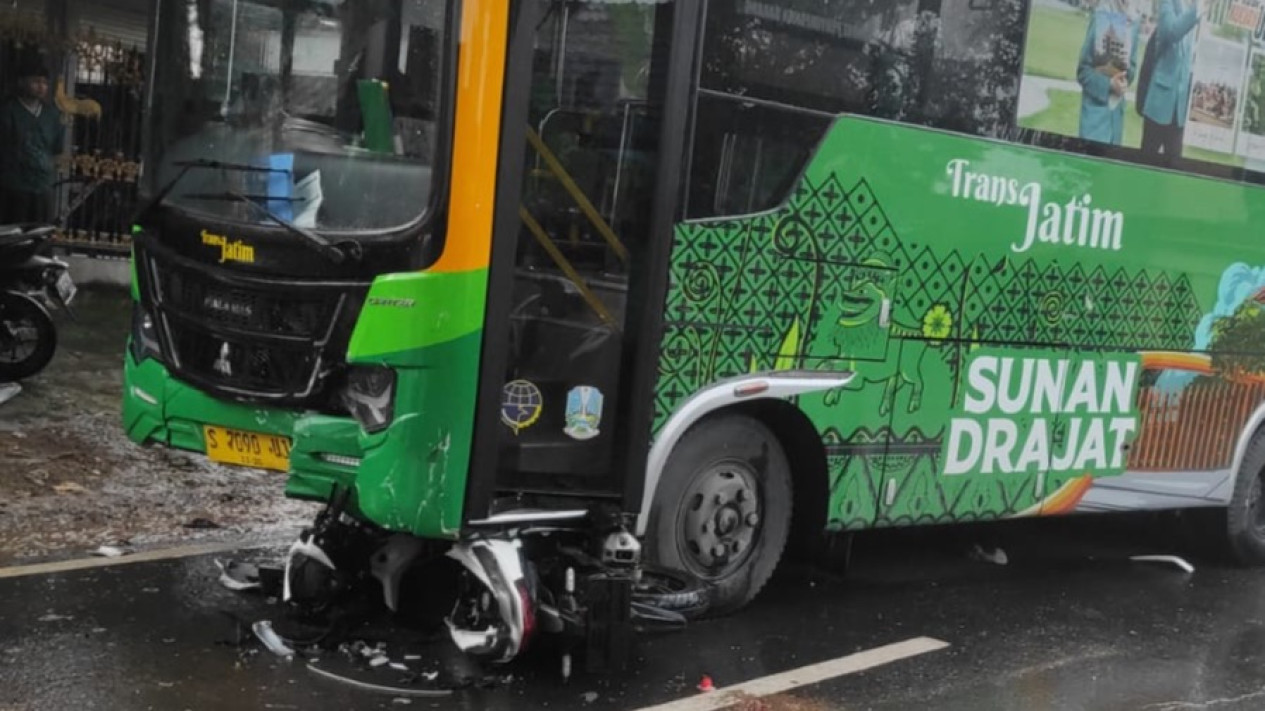 Pengendara Motor Tewas setelah Tabrakan dengan Bus Trans Jatim Lamongan