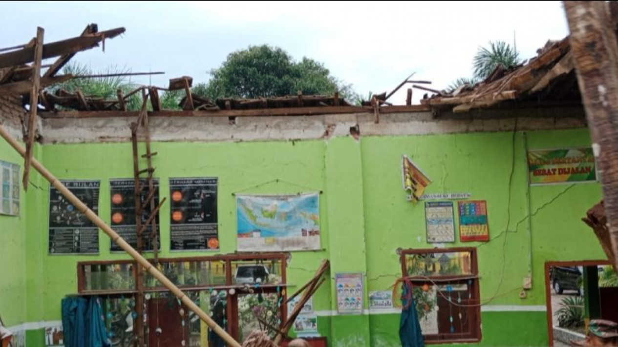 Menurutnya ada tiga ruangan yang atapnya ambruk yakni satu laboratorium yang digunakan untuk menyimpan alat alat drumband dan dua ruang kelas, sehingga totalnya ada tiga ruangan yang rusak.