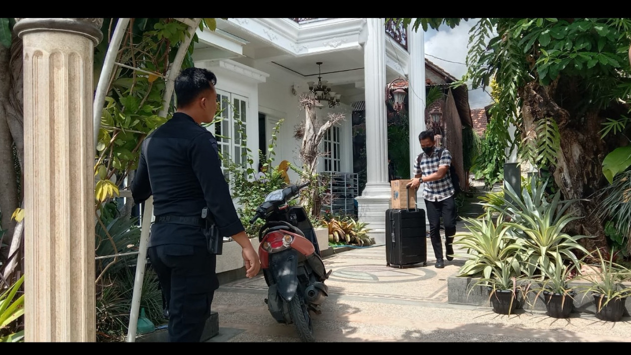 "Ya sebelum adanya penggeledahan dua petugas datang minta izin mau melakukan penggeledahan. Untuk pemilik rumah tidak ada katanya sedang di Surabaya," terangnya.