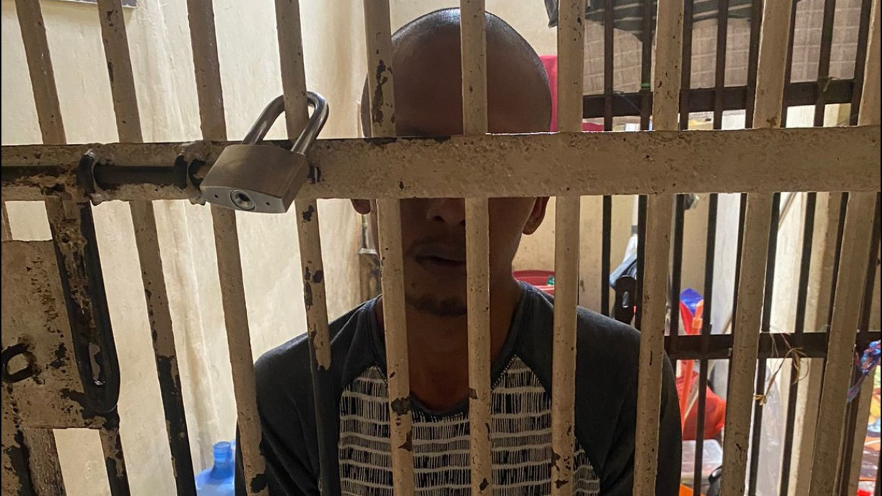 Setelah ditetapkan sebagai tersangka, NR langsung dimasukkan ke dalam sel Polresta Mamuju. Tersangka hanya bisa pasrah saat digelandang polisi masuk ke dalam sel.