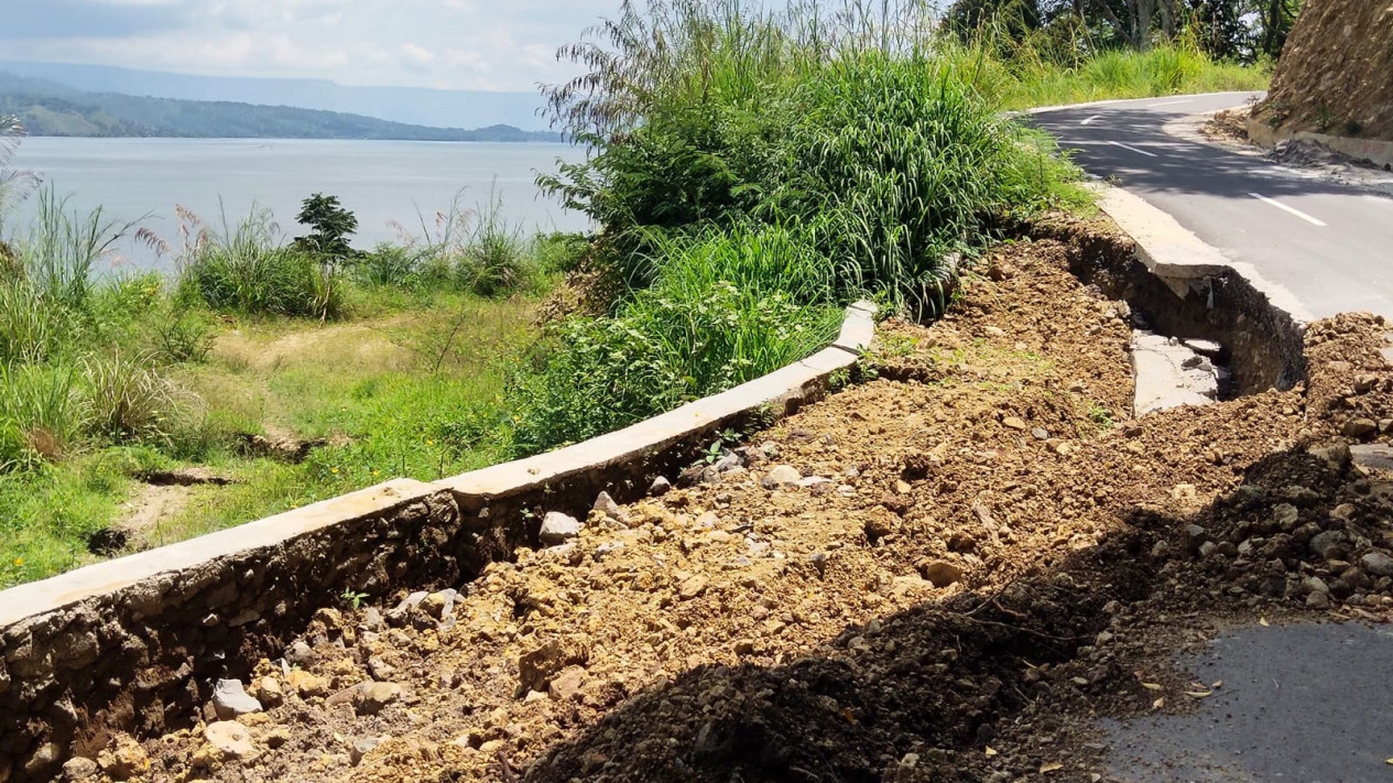Simalungun, tvOnenews.com - Baru beberapa bulan selesai dikerjakan, proyek tembok penahan tanah yang baru selesai dikerjakan di jalan ringroad Tambun Raya-Sipolha, bantuan dana percepatan pembangunan di Kawasan Super Priotas Nasional ( KSPN) Danau Toba, di Kecamatan Pamatang Sidamanik, Kabupaten Simalungun, Sumatera amblas dan retak retak.