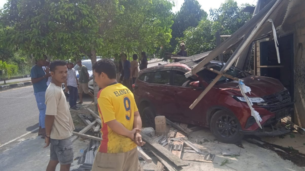 Mobil tersebut menabrak toko di pinggir jalan yang berada di ruas Jalan Jenderal Sudirman, Dusun 5, Kampung Daya Baru, Desa Belolaut, Kecamatan Mentok, Kabupaten Bangka Barat.