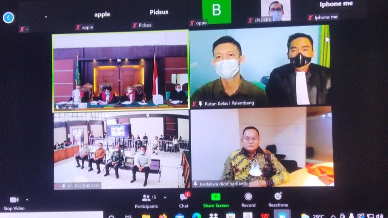 Palembang, Sumatera Selatan - Sidang virtual dugaan korupsi fee proyek di Musi Banyuisin (Muba) dilanjutkan di PN Tipikor Palembang dengan agenda pemeriksaan saksi yang juga Bupati Muba Nonaktif Dodi Reza Alex dan terdakwa penyuap Suhandy.