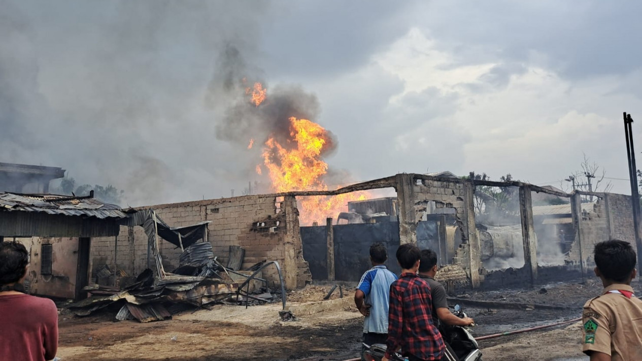 Palembang - Buat geger warga, dudang yang diketahui menjadi tempat pengepulan BBM jenis Solar di Kertapati, Kota Palembang, meledak dan terbakar. Namun, polisi belum dapat memastikan penyebab ledakan tersebut.