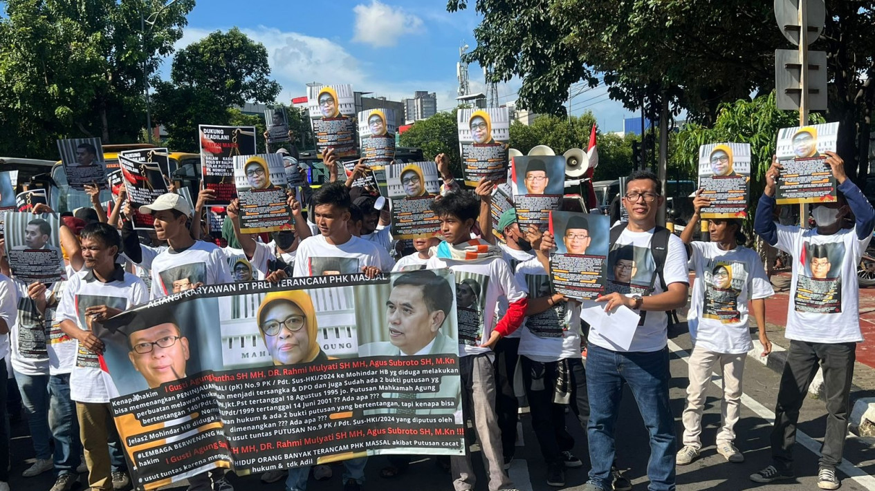 Jakarta, tvOnenews.com - Lebih dari 100 orang berkumpul di depan Mahkamah Agung untuk mengekspresikan kekhawatiran atas rencana pemutusan hubungan kerja (PHK) massal yang dihadapi oleh karyawan PT Polo Ralph Lauren Indonesia akibat adanya putusan PK Nomor: 9 PK / PDT.SUS-HKI/2024 yang cacat hukum dan tidak adil.