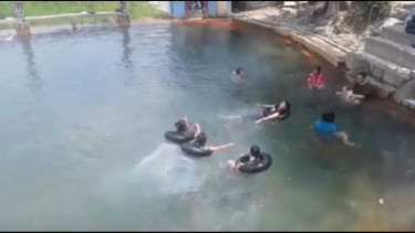 “Katanya begitu. Tapi kita datang ke sini untuk menghabiskan waktu libur dan salah satu tujuan kita ya ke kolam air soda ini mandi bareng-bareng,” ucap Juniwan.