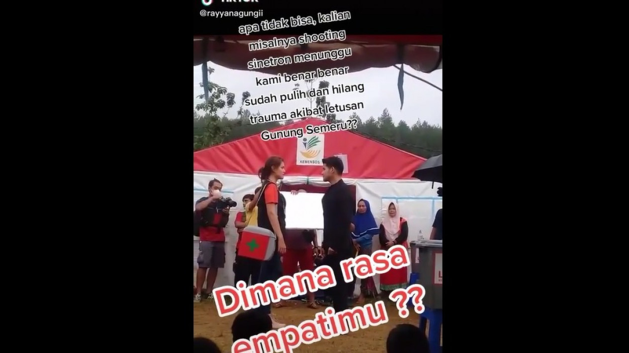 "Apa tidak bisa, kalian misalnya shooting sinetron menunggu kami benar-benar sudah pulih dan hilang trauma akibat letusan Gunung Semeru? Dimana rasa empatimu?" demikian caption dalam video.
