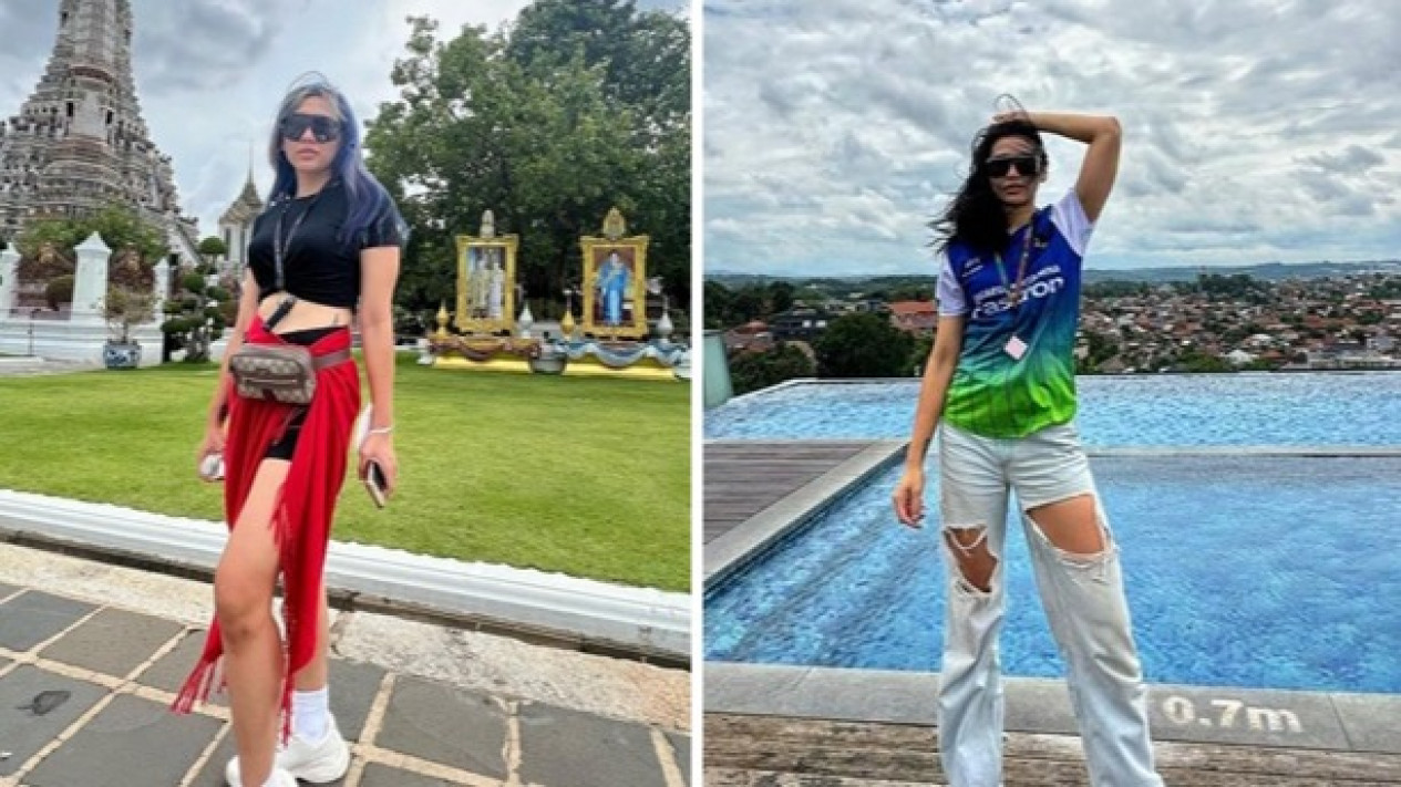 Pesona Yolla Yuliana tetap terpancar deras saat sedang liburan dan beraktivitas sehari-hari tanpa jersey.