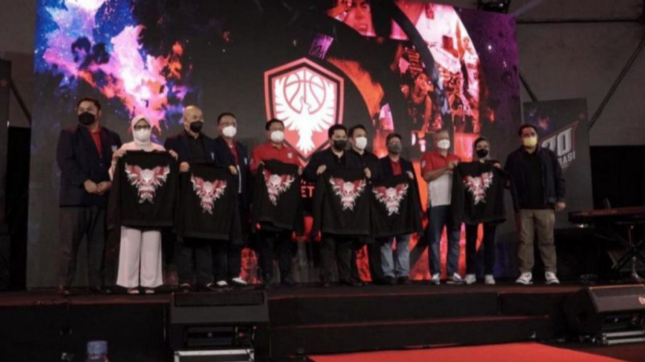 Perkenalan logo baru berbentuk perisai dengan gambar burung garuda yang di atasnya ada bola basket dilakukan di Senayan Spark Mall, Senayan, Jakarta Pusat, Selasa malam (14/12). Hadir dalam acara tersebut Menteri BUMN Erick Thohir, para pemilik klub bola basket nasional, perwakilan dari Komite Olimpiade Indonesia, KONI Pusat serta perwakilan para sponsor.