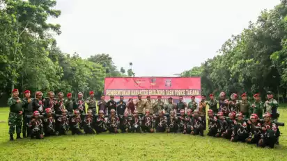 Jakarta - Komando Pasukan Khusus (Kopassus) merupakan salah satu mitra Kemensos dalam meningkatkan profesionalitas Tagana. Asisten Teritorial (Aster) Kopassus Letkol. Inf. Irfan Amir menyambut baik dan mengapreasiasi pelatihan pembentukan Task-Force Tagana sebagai upaya menciptakan Tagana yang berkarakter disiplin dan bertanggungjawab, serta memiliki jiwa kemanusiaan dan berwawasan kebangsaan.