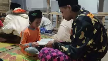 David saat Mengajar dengan Menggunakan Jaket Banser (Twitter Sandi Alun Samudro)