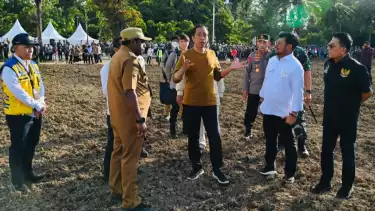 Papua, tvOnenews.com - Presiden Joko Widodo (Jokowi) melaksanakan kick off food estate 10 ribu hektare di Distrik Manem, Kabupaten Kerom, Provinsi Papua. Sebagai langkah awal, pemerintah melalui Kementerian Pertanian akan melakukan penanaman jagung di lahan seluas 100 hektare.