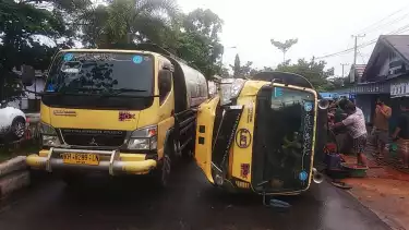 Truk Pengangkut Minyak Sawit Tabrak Pembatas Jalan, Isinya Tumpah ke Parit