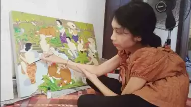 Lukisan berjudul "Pagi Hari di Bali" itu diciptakan seniman Winda Karunadhita.